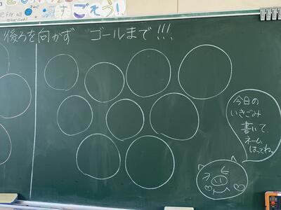 4年生は、今日の意気込みを登校した子から黒板に書いてもらうようです。