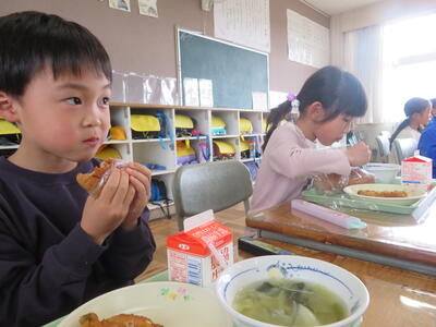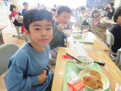 初めての給食。