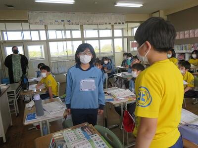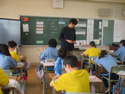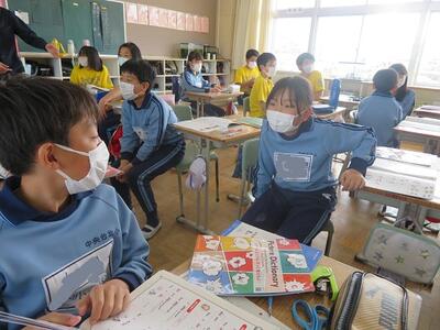 外国語。6年生。今年度から、外国語推進リーダーの先生が3~6年生までの外国語を教えます。
