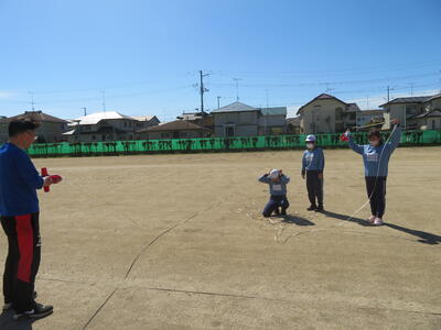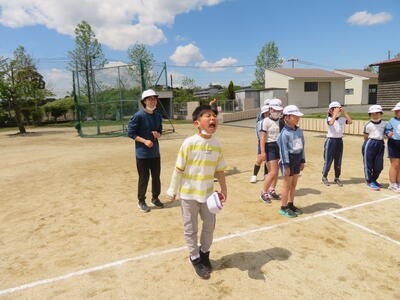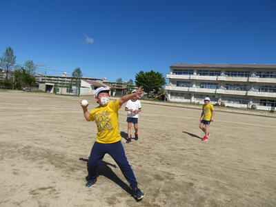 4月19日(水)6年生。ボールを投げる先には・・・