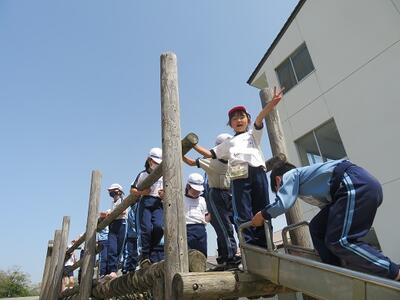 大休憩。3年生から使ってよいことになっているアスレチック。