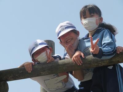 ようやく使える喜び。多くの3年生がアスレチックで遊んでいました。