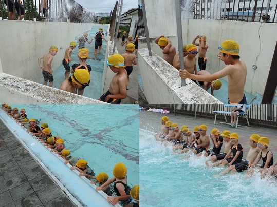 プール開きから12日後、やっと北小のプールにも元気な声が聞こえるようになりました。今年の初プールは、なんと1年生でした。着替えの仕方やシャワーの浴び方、プールの入り方など、先生の丁寧な指示をしっかり聞いて学習していました。