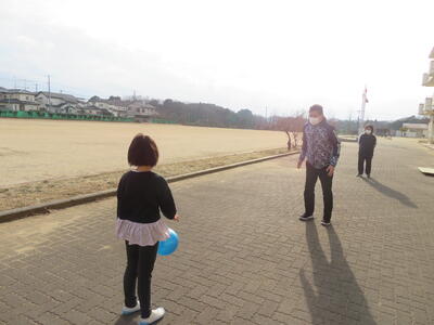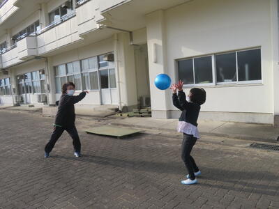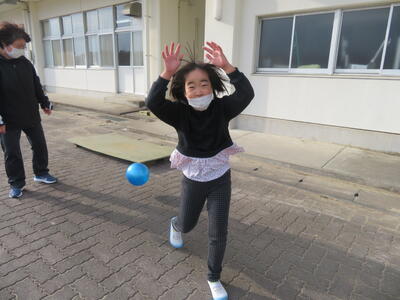 あすなろ学級。2年生が先生と3人でドッジボール。