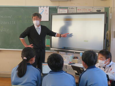 新聞の読み方・書き方講座で講師の方を呼んで。4・5年生。