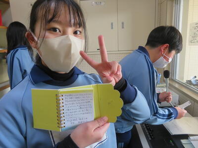 家庭科クラブのクラブ紹介。きちんと原稿を書いて臨んでいました。