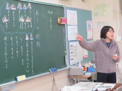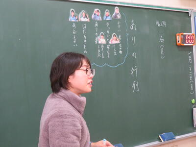 まずは「ありの行列」の題名から分かることを話し合う『題名読み』の時間。