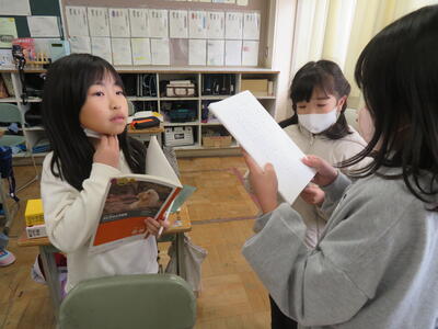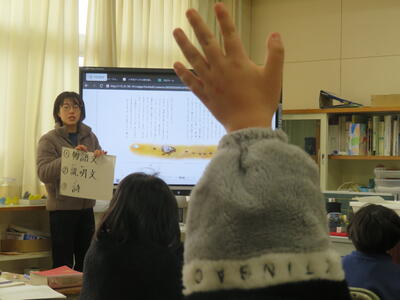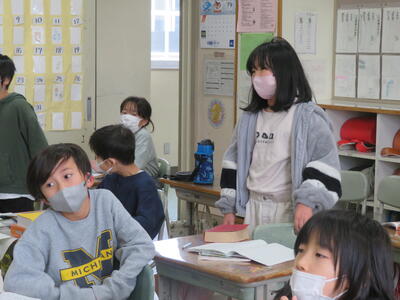 子供同士のやりとりの中で、良い表現ができた子はみんなの前で発表の機会。