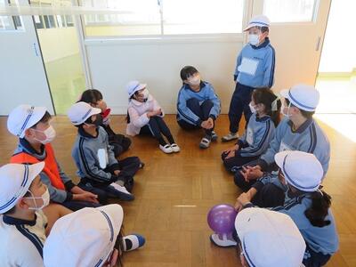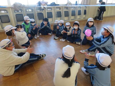 風船バレーをした班。「6年生、お掃除の仕方を優しく教えてくれてありがとう。」1人1人がお礼を言いました。