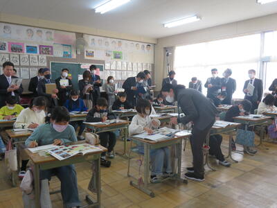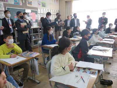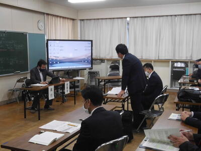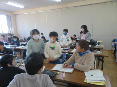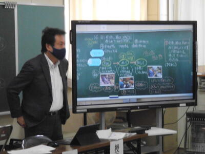 近隣校の社会科を研究されている20名の先生方にもおいでいただき授業を見ていただきました。