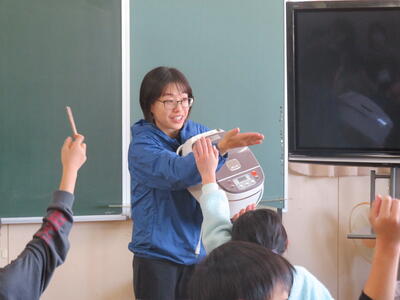 「できる、できる!」答える子供たち。「お米を研いで」「水入れて」「電気入れて」「スイッチ押して・・・」