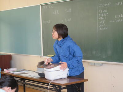 3年生、社会。「かま」と「炊飯器」が並んで。
