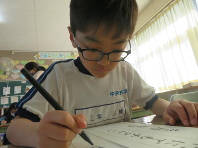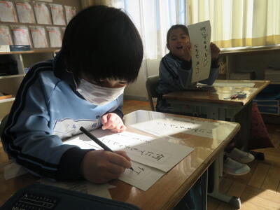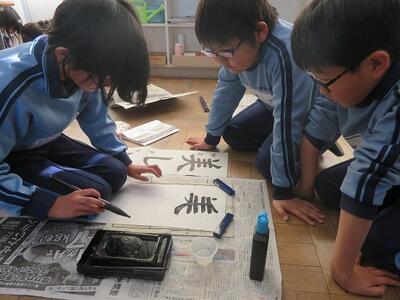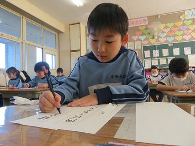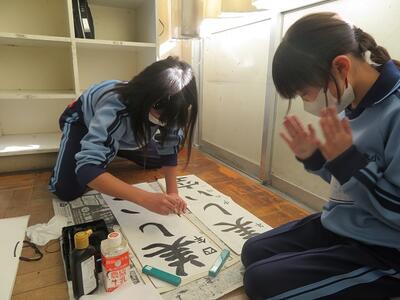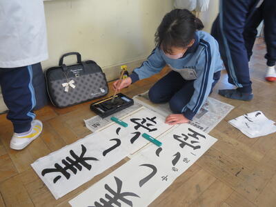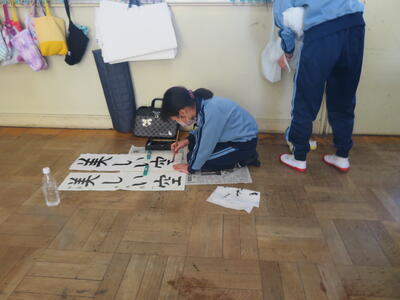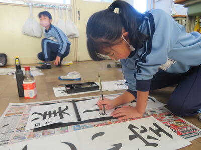熱心に取り組んでいるのは校内書きぞめ会に向けて。