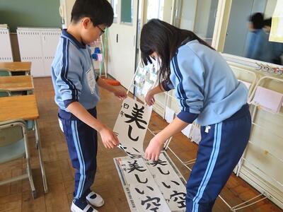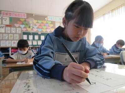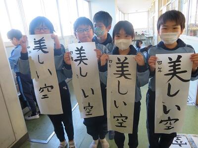 校内書きぞめ会でも、4年生の良さが発揮されていました。