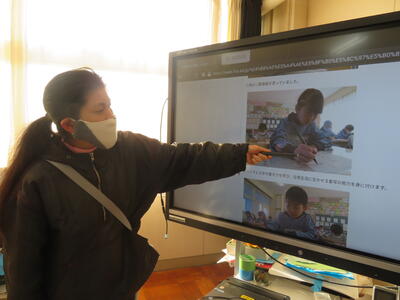 校内書きぞめ会の時の、自分たちの頑張りをホームページを使って振り返って。