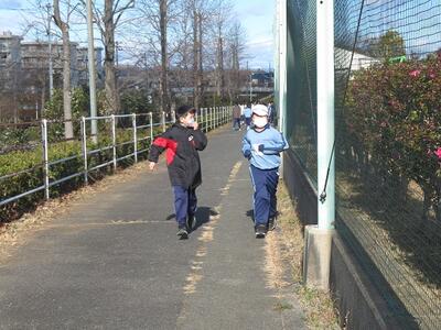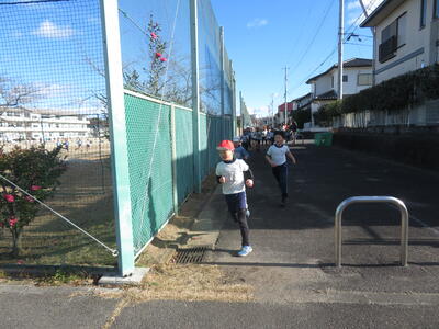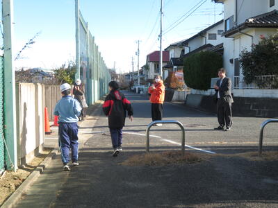 校地外に出て、すぐ。1位の子に後ろにぴったりついていく子の姿が見えます。