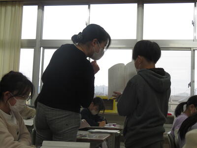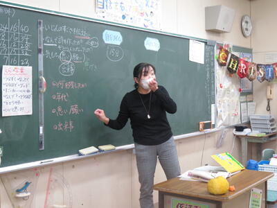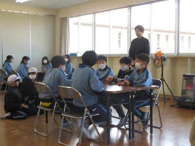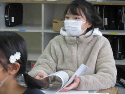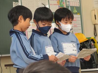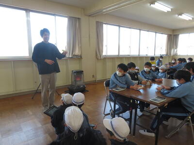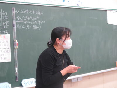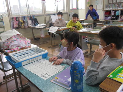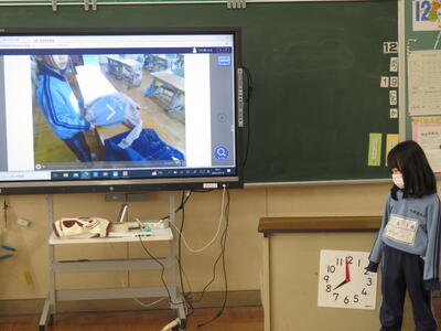 進行の男の子。振り返りのワークシートに「説明するのがドキドキしたよ。」と書かれていました。