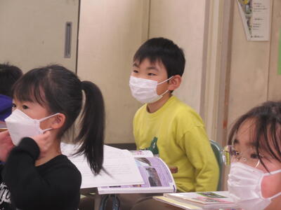 国語の時間。絵本も上手に読んで年長さんに披露します。