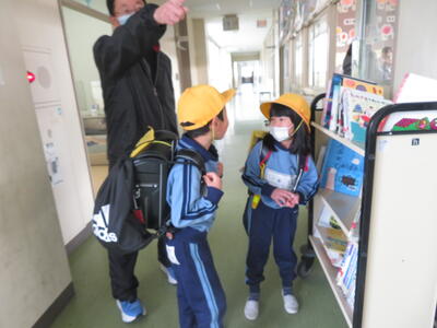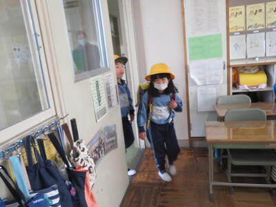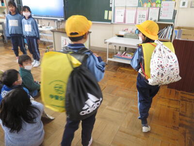 下校の時間がやってきて。北小1年生の1日が終わります。