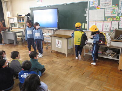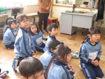 1年生、自分たちで年長さんを楽しませる企画を考えて練習・準備をしてきました。