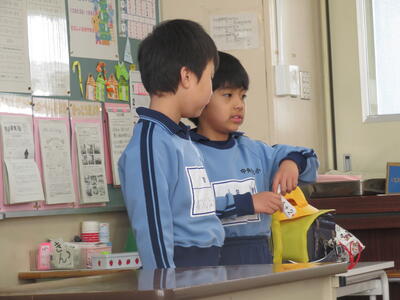 看板も作って、呼び込みもして。生活科の学習でもあります。