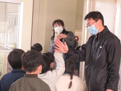 「4月にまた、会いましょう。」校長先生とハイタッチ。