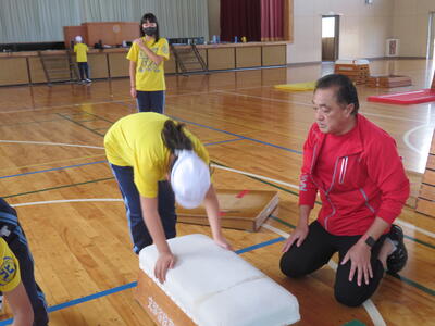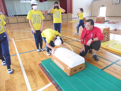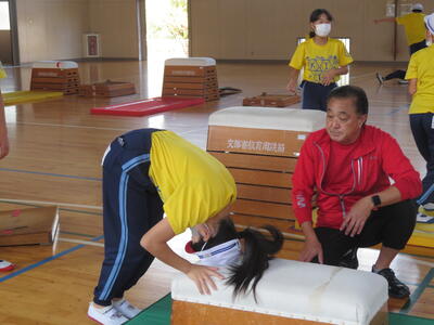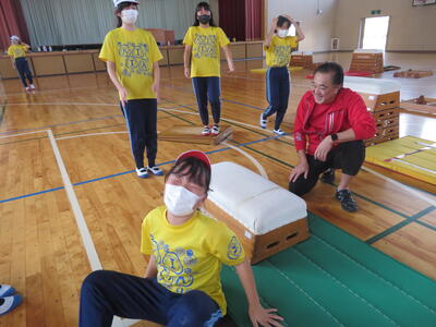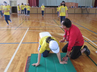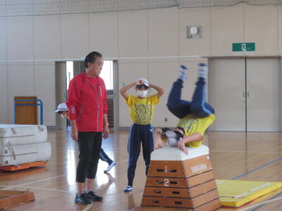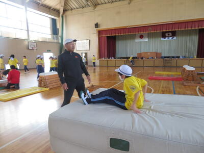 『台上前転』コーナーの先生。