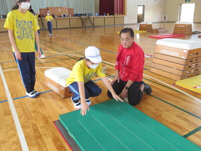 「これならできるかも!?」何度か前転をマットで練習して。