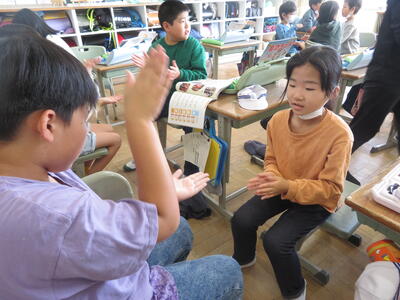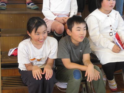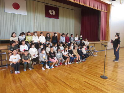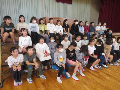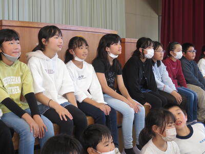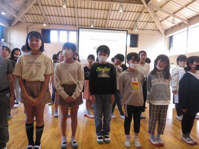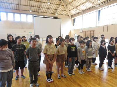 4年生、交流会を終えたら、学習発表会で発表した校歌と合唱を披露します。