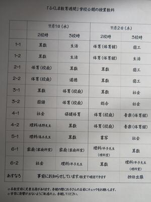 明日は「ふくしま教育週間」。保護者の方の来校をお待ちしています。