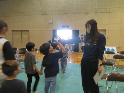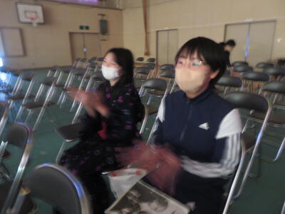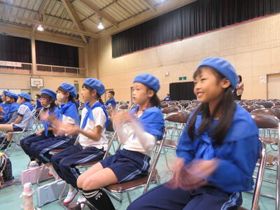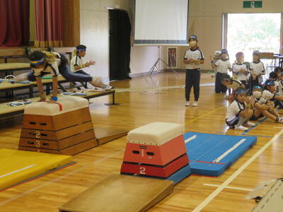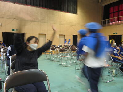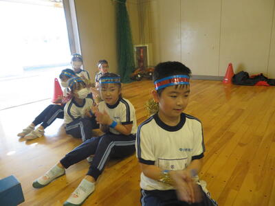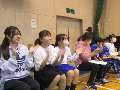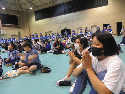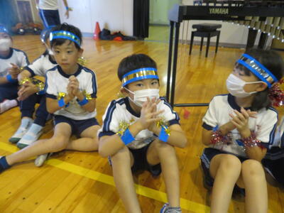 自分の出番ではないときは、友達の演技を手拍子で盛り上げます。