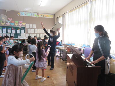 5年生は1クラス。担任の先生一人で音楽、アナウンス・・・