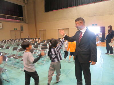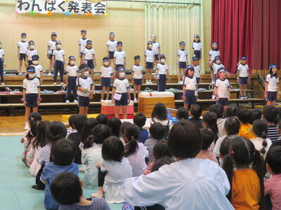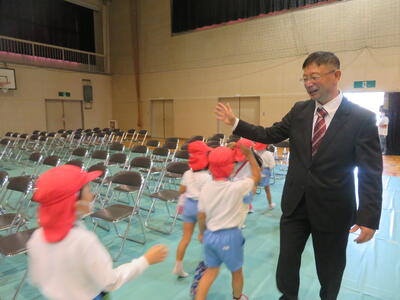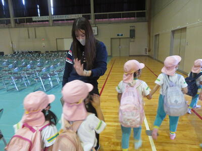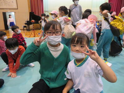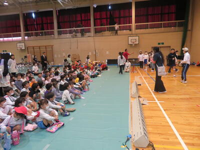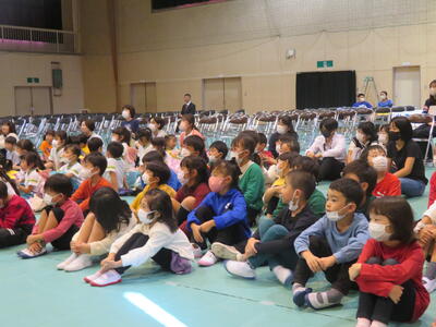 3つの幼稚園・保育園が来校。写真手前は1年生、奥に座る園のお友達!