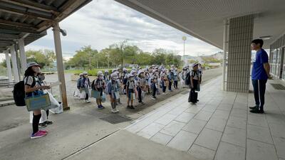 学校に到着して帰校式を行いました。楽しい二日間でした。\(^^)/