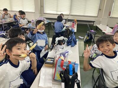 子供たち、自分たちから進んで挨拶ができました。「先に挨拶」が身についている4年生。