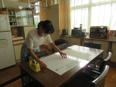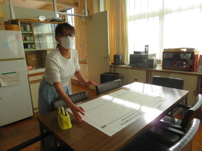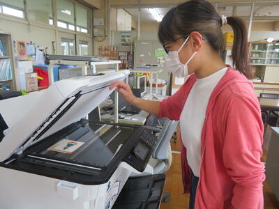 職員室には印刷や配付物、学校の掲示物の作業をしてくれるスタッフもいます。
