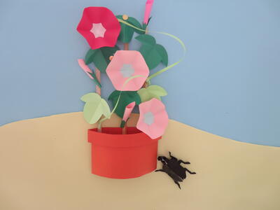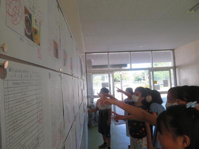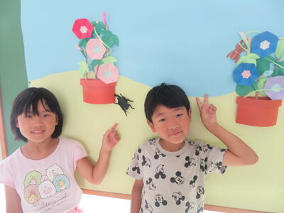 とりわけ子供たちに注目を集めた今月の掲示物。立体的なカブトムシが子供たちに人気でした。
