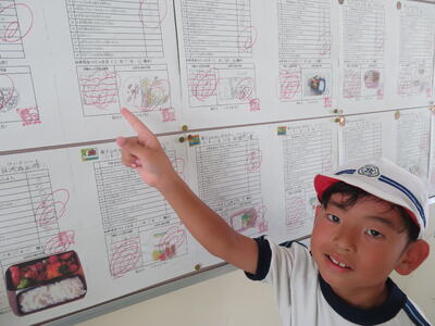 「お弁当デー」の取組の掲示物。保護者の皆様にもご協力いただきました、ありがとうございました。