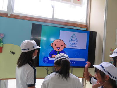 1学期間、昇降口で、その日のニュースを繰り返し流しました。社会で起きていることへの興味を向ける取り組みの一つ。