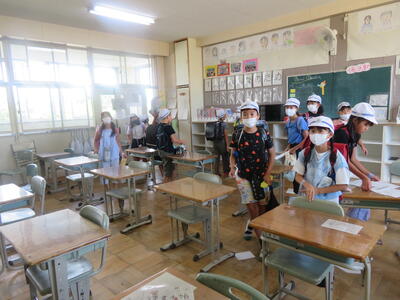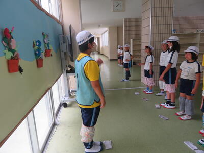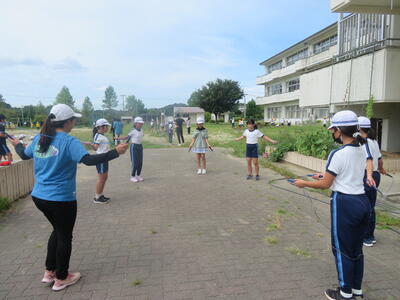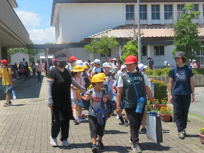 外での活動時間20分を守って子供たちが教室に戻っていきます。