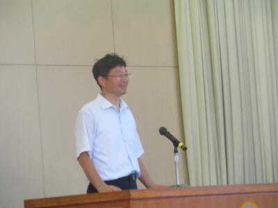 7月27日(木)校長先生、校庭の草引き中。校庭もきれいに保って子供たちを待ちます。今日からホームページはしばらくお休みにします。また、2学期お会いしましょう。