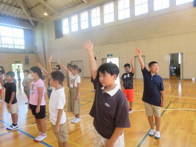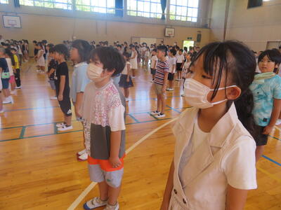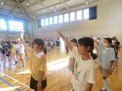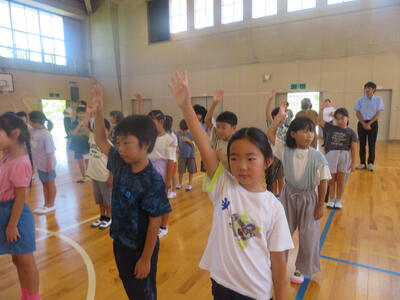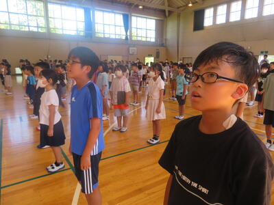 「2学期楽しみな人?」校長先生からの質問にみんな、元気に手を挙げていました。
