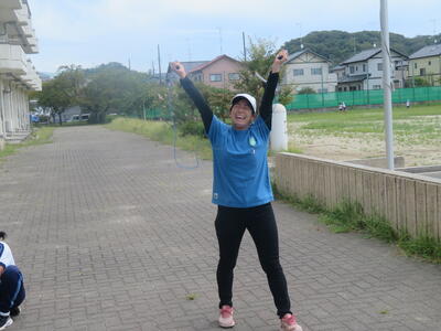 「やった!」先生の勝利!本気で挑むところが体育の先生。