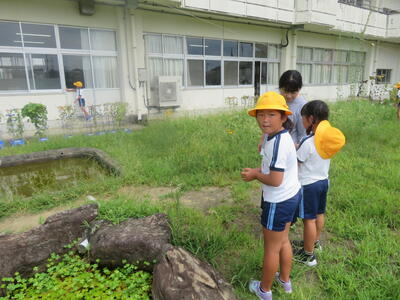 池の周りも雑草が。9月4日はクリーン活動で全校生で草むしり。軍手の準備、よろしくお願いします。