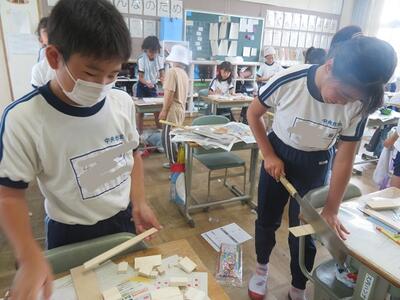 『ゴミ』がテーマの班。用務員さんからもお話を聞きに。