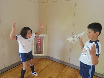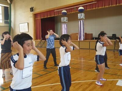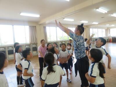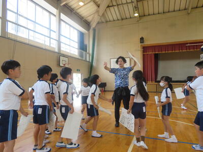 体を使って考えや気持ちを表すことも「表現」であることを子供たちが体感しました。