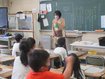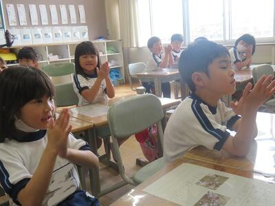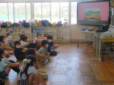 先生が範読をします。先生の語り口調で、どんなお話なのかの理解を進めます。