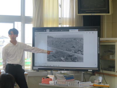 子供たちに想像がしにくい戦争時代の写真を見せて、このお話の時代背景への理解を助けます。