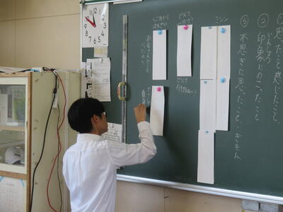最初の自分の感想が、みんなで話し合うことを通してどう変化していくか。国語では『自分を読む』ことも目標の一つです。