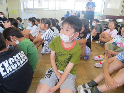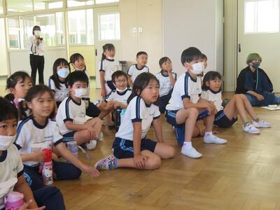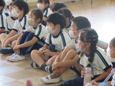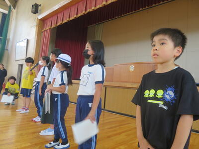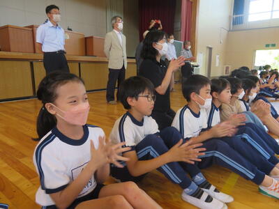 今日の最後の表現は、昨年、参加した4年生がお客さんになって鑑賞。後ろには学校評議員の皆さん。